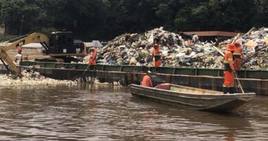 As equipes de obras do distrito da Cidade Nova executam a recuperação asfáltica em toda extensão da via. Um efetivo de 12 servidores com tratores e retroescavadeira atuam na área.