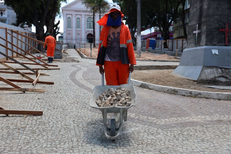 A Prefeitura de Manaus, por meio da Secretaria Municipal de Infraestrutura (Seminf), segue nesta segunda-feira, 1º/9, com as obras de revitalização da praça dos Remédios, no centro histórico. O espaço, que guarda parte da memória e do patrimônio cultural da cidade, recebe melhorias dentro do programa “Mutirão no Bairro”, que vem transformando a região central.