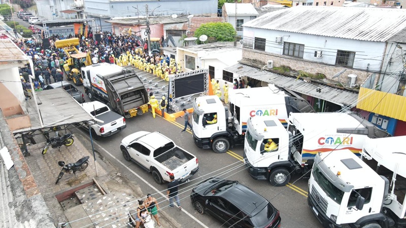 Na mesma ocasião, também foram entregues novos caminhões de coleta de lixo para reforçar os serviços de limpeza urbana.