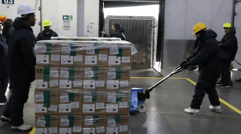 Nesta primeira remessa, chegaram 11.978 unidades. Ao todo, serão quatro lotes do medicamento, sendo que as próximas entregas estão previstas para dezembro deste ano, março e junho do ano que vem.