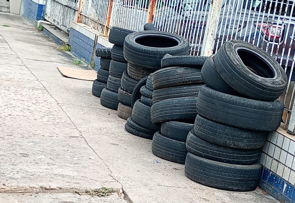 Empresas que vendem ou trocam pneus devem encaminhar o material usado a locais licenciados para reciclagem ou coprocessamento, evitando impactos como alagamentos e criadouros do mosquito Aedes aegypti.