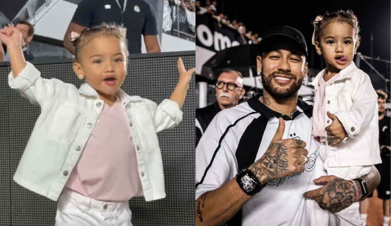 Antes disso, Mavie apareceu imitando a clássica comemoração do pai: uma careta, com as mãos no rosto e a língua de fora. O registro, é claro, derreteu o coração dos torcedores e viralizou rapidamente nas redes. Mesmo com a vitória do Santos por 3 a 1 sobre o Corinthians, quem realmente roubou a cena foi a pequena.