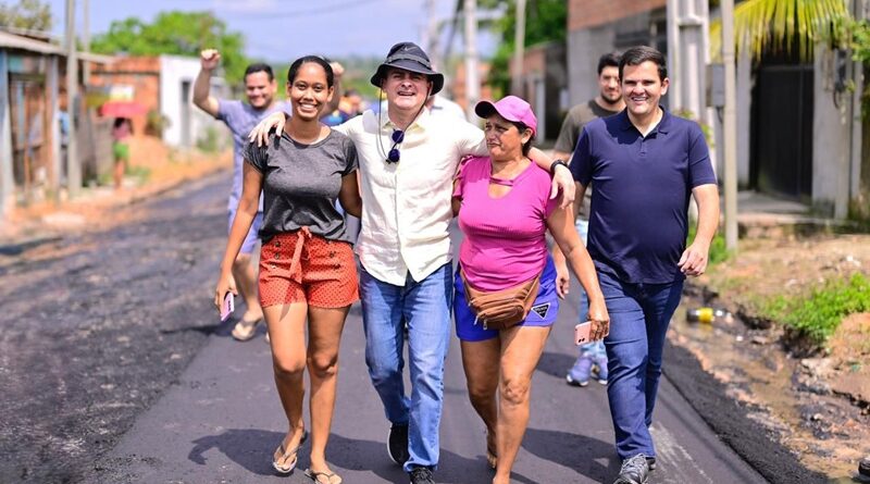 Prefeito David Almeida e vice Renato Junior vistoriam juntos obras de asfaltamento na comunidade dos Nobres, zona Norte de Manaus