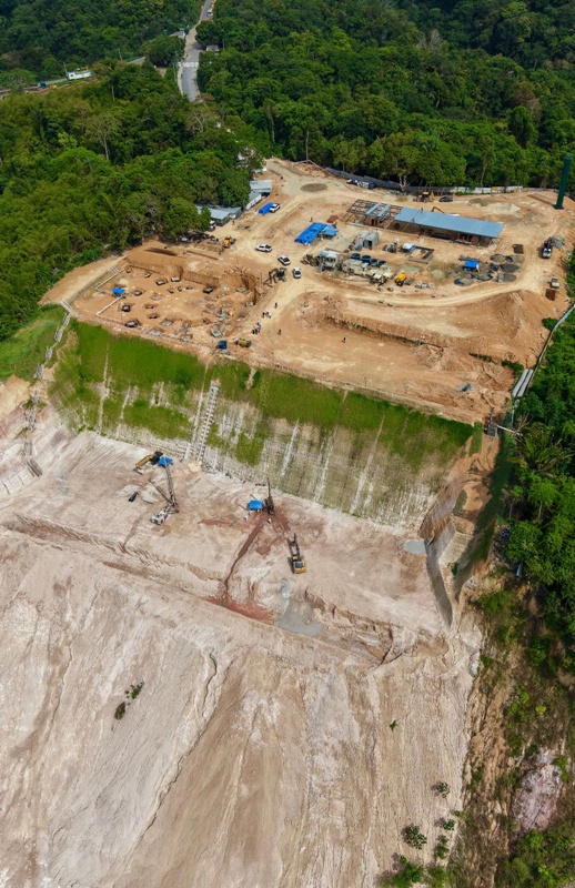 As equipes técnicas também avançam na contenção do talude, uma das etapas mais complexas da obra, com o uso de tecnologia de jet grouting, método que reforça o solo com colunas de concreto injetadas em alta pressão, e a instalação de estacas-prancha para garantir a estabilidade da encosta.