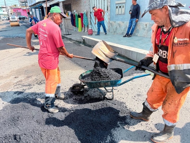 A Prefeitura de Manaus, por meio da Secretaria Municipal de Infraestrutura (Seminf), reforça, nesta segunda-feira, 20/10, a manutenção viária da rua Arnoldo Carpinteiro Péres, no bairro Petrópolis, zona Sul da capital. A ação reforça o olhar atento da administração municipal para as necessidades da população.