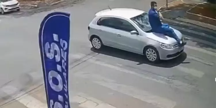O caso ocorreu em Minas Gerais, no Centro de Patrocínio, no Alto Paranaíba. Segundo a Polícia Militar (PM), o homem, que estava em cima do carro e que não teve nome revelado, seguia pela Rua Expedito Dias quando foi atingido pelo outro veículo no cruzamento com a Rua Teodoro Gonçalves. Após o acidente, a vítima desceu para tentar conversar com o outro motorista, também com o nome não revelado, de 48 anos, mas ele fugiu.