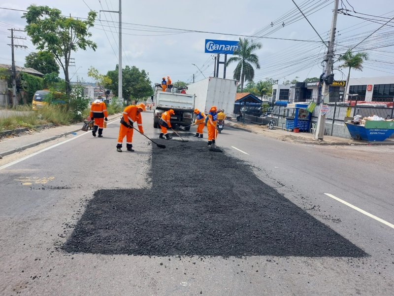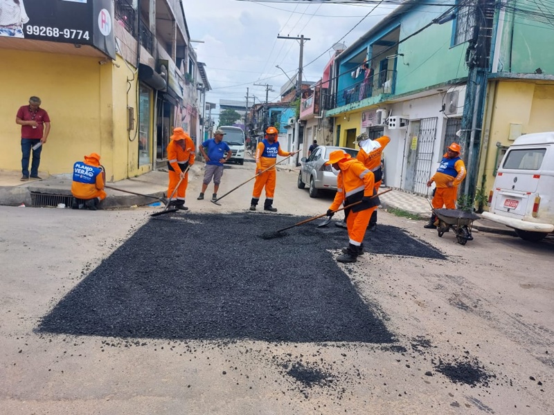 ‘Plano de Verão’ da Prefeitura de Manaus reforça pavimento em ruas do bairro Armando Mendes