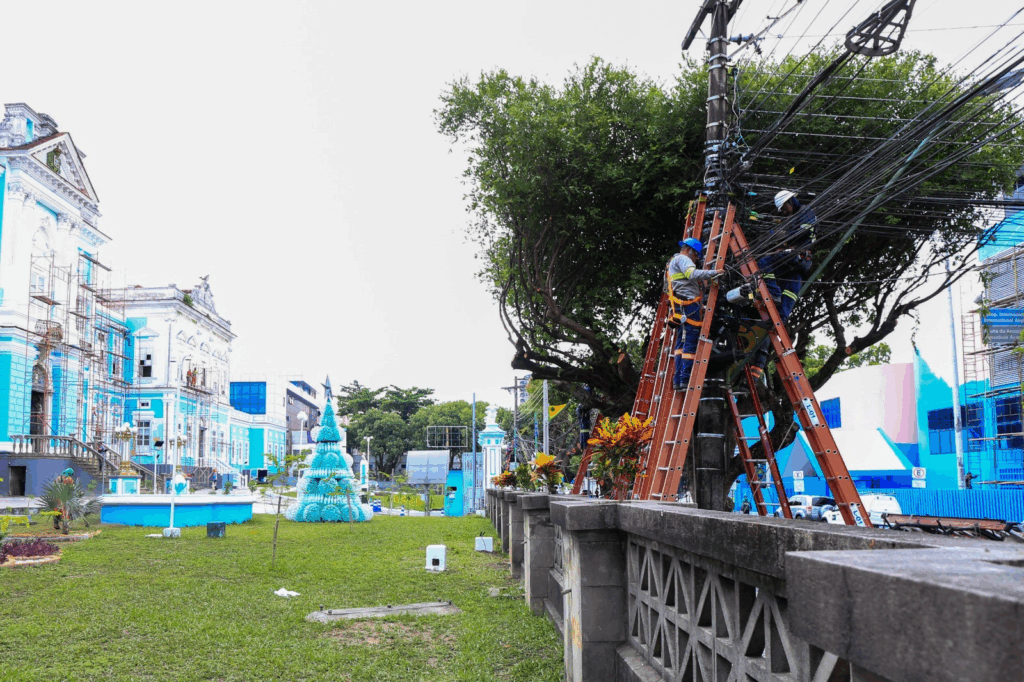 A Prefeitura de Manaus avança com as ações de revitalização urbana no centro histórico. Nesta quarta-feira, 5/11, equipes da operação de retirada de fios e cabos obsoletos voltaram às ruas, alcançando a marca de 7 toneladas de material removido de postes em oito vias da área.