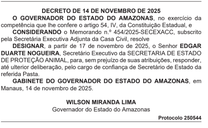 Nos corredores da Aleam, a avaliação é dura: Amauri virou “peão sacrificado” de um jogo político calculado pelas lideranças do União Brasil. A movimentação enfraquece ainda mais a imagem de estabilidade do partido no Amazonas, e reacende disputas internas por espaço, principalmente entre grupos ligados ao governador e aos parlamentares. Secretaria instável e dominada por interesses políticos A criação da Secretaria de Proteção Animal, vista inicialmente como vitrine para Joana Darc, forte defensora da causa, transformou-se em sinônimo de instabilidade. Em pouco mais de 30 dias, a pasta já anunciou outro titular. A saída de Joana levou à nomeação de Edgar Duarte Nogueira, antes secretário-executivo da Sepet.