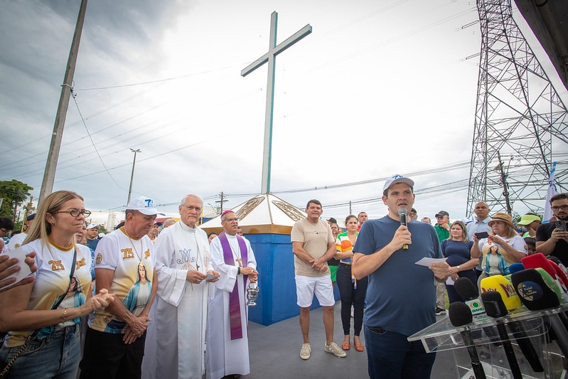 O vice-prefeito de Manaus, Renato Junior, inaugurou, neste domingo, 30/11, o monumento Cruz Gloriosa, obra que simboliza a fé e a resistência, erguido na rotatória do Colônia Antônio Aleixo, na zona Leste da capital. A intervenção, executada pela Secretaria Municipal de Limpeza Urbana (Semulsp), é uma realização conjunta da Prefeitura de Manaus e da Arquidiocese da capital, em homenagem aos 75 anos da paróquia Nossa Senhora das Graças.