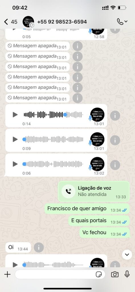 Ao perceber que eu já estava desconfiando ele diz ser FRANCISCO COSTA – Usando o nome de outro Jornalista de Manaus