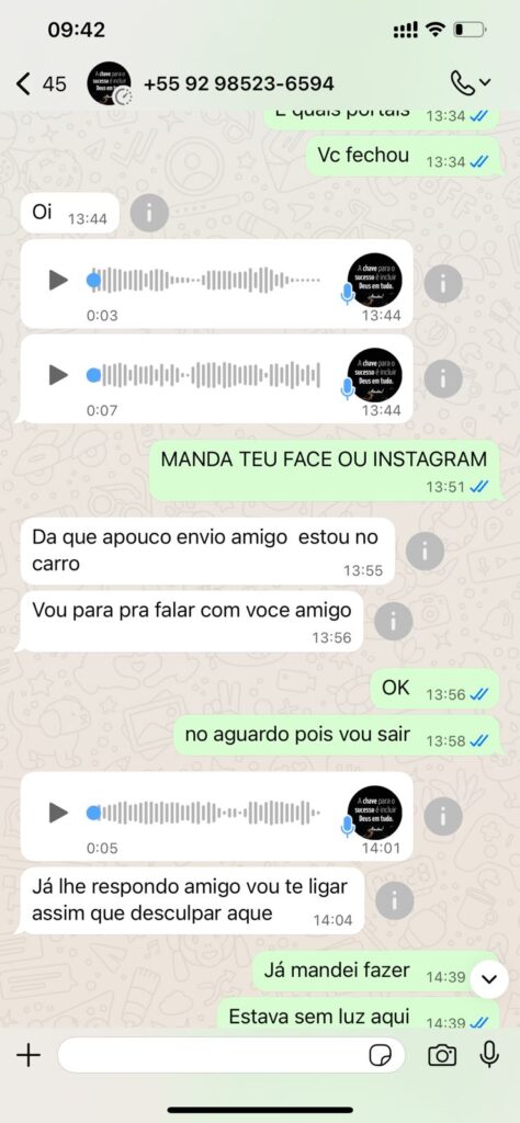Neste áudio ele diz que vai acetar um valor entre R$ 4,5 E 6 mil e nesta hora eu já sabia que era golpe