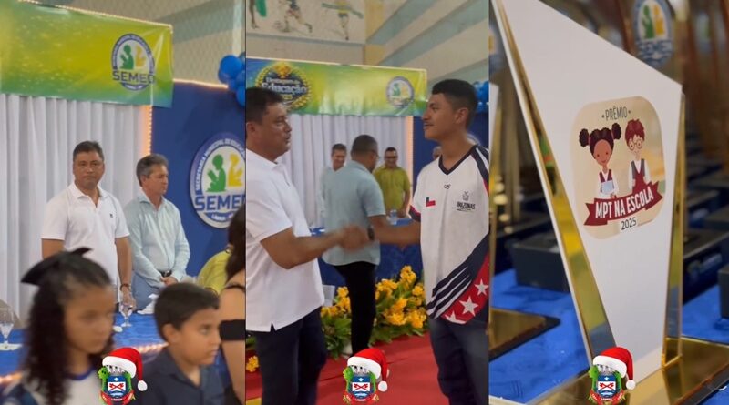 A Secretaria Municipal de Educação promoveu, na noite desta terça-feira, uma programação especial para reconhecer e premiar os profissionais da educação que mais se destacaram ao longo do ano de 2025. A cerimônia contou com a presença do prefeito Gerlando Lopes e do vice-prefeito João Roberto.