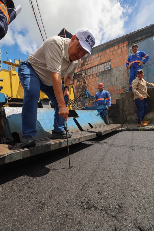 “Olha o tamanho da espessura do asfalto. Há muito tempo que as ruas não eram recapeadas. Agora o asfalto vai durar muito tempo”, afirmou.