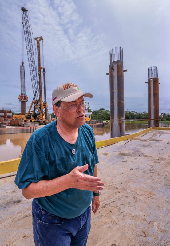 Com articulação e acompanhamento do senador Eduardo Braga, obra da ponte sobre o rio Autaz Mirim avança para a fase final, impulsionando emprego, renda e mais segurança na BR-319.